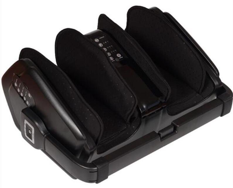 Masážny prístroj na nohy a chodidlá EMS - masáž nôh + chodidiel + lýtok + rúk. Stroj (stimulátor) multifunkčný nielen na nohy je vybavený rotačnou guľôčkou, valcovacou tyčinkou, ale taktiež upokojujúcou tepelnou terapiou, vibráciami a tlakom vzduchu s funkciou kývania. Tým pádom dokáže simulovať ľudský dotyk a poskytuje komplexnú masáž lýtok a chodidiel. Poskytuje rôzne úrovne intenzity pre každú funkciu.